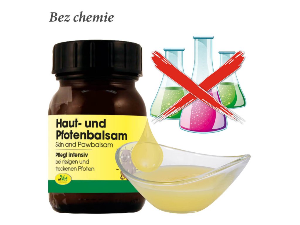 Balzám na rány, kůži a tlapky je tvořen čistě přírodními složkami a neobsahuje žádné syntetické minerály, konzervanty ani laciná plniva. Poskytuje maximálně šetrnou péči bez chemie, parfemace nebo dráždivých přísad. Bez jakékoliv chemie, pouze čistě přírodní složení. Vhodný i pro citlivé jedince a bezpečný pro zvířecí mámy v období březosti i kojení a bezpečný také pro jejich mláďata.