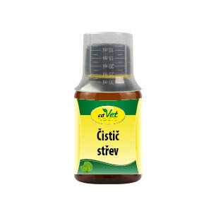 Očistou střev odstraníme nános odpadů, který je živnou půdou pro parazity. Vhodná podpora také po antibiotikách, očkování, narkóze. Očista zlepšuje kondici střev, kde sídlí na 80 % imunity. První měsíc podáváme Čistič střev, poté Aktivní střevo.