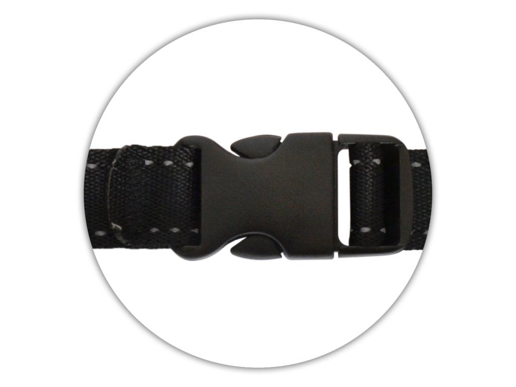- Vpředu má ohlávka bezpečnostní reflexní proužek. Výběr z několika velikostí zajišťuje psovi komfort, nepřekáží při jídle, pití a dýchání (nestahuje mu krk a nenutí psa lapat po dechu).
