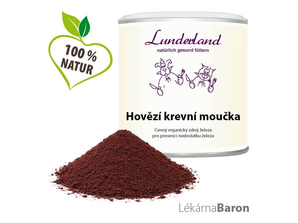 100 % sušená hovězí krev. Analytické složky: hrubý protein 92 % / voda 8 % / železo 2610 mg/kg. Neobsahuje laciná plniva, ani konzervační látky. Zařazení podle legislativy: krmná surovina pro psy a kočky.