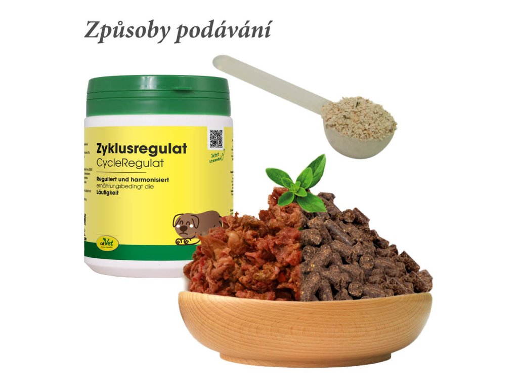Sypký, jemně mletý doplněk výživy Regulace hormonů vmícháme psovi do vlhkého krmiva, nebo namočených granulí. Ve většině případů je dobře přijímán, pokud máme doma odmítavého jedince můžeme doplněk vmíchat do mletého masa - syrového nebo mírně povařeného (lépe voní).