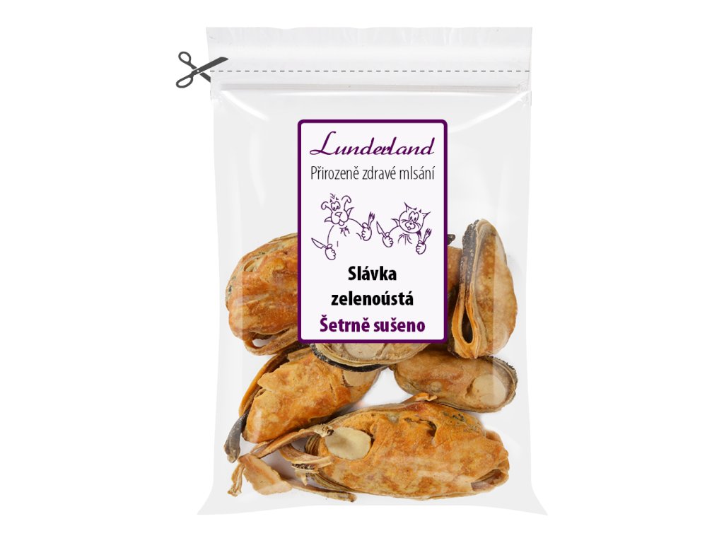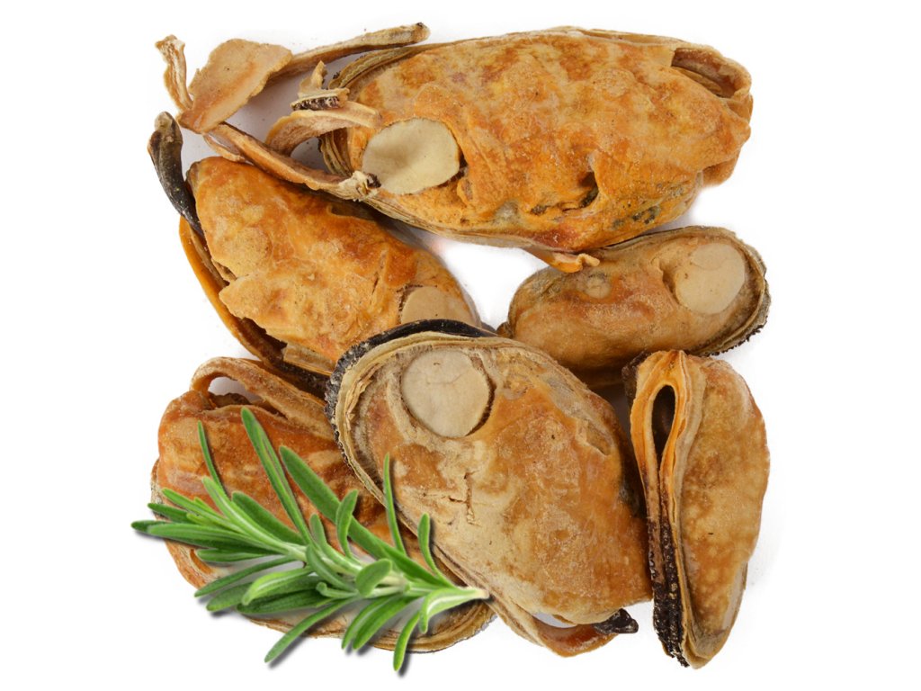 Slávka zelenoústá Perna canaliculus 100 % (pouze tělo mušle bez skořápkovitého obalu). Analytické složky (jednotlivé šarže se mohou nepatrně lišit): hrubý protein 69,3 % / hrubé oleje a tuky 9,2 % / hrubá vláknina 0,2 % / hrubý popel 5,8 % / vlhkost 4,98 %. Zařazení dle legislativy: krmná surovina pro psy a kočky.