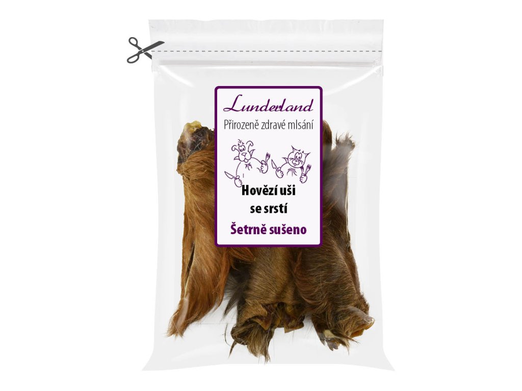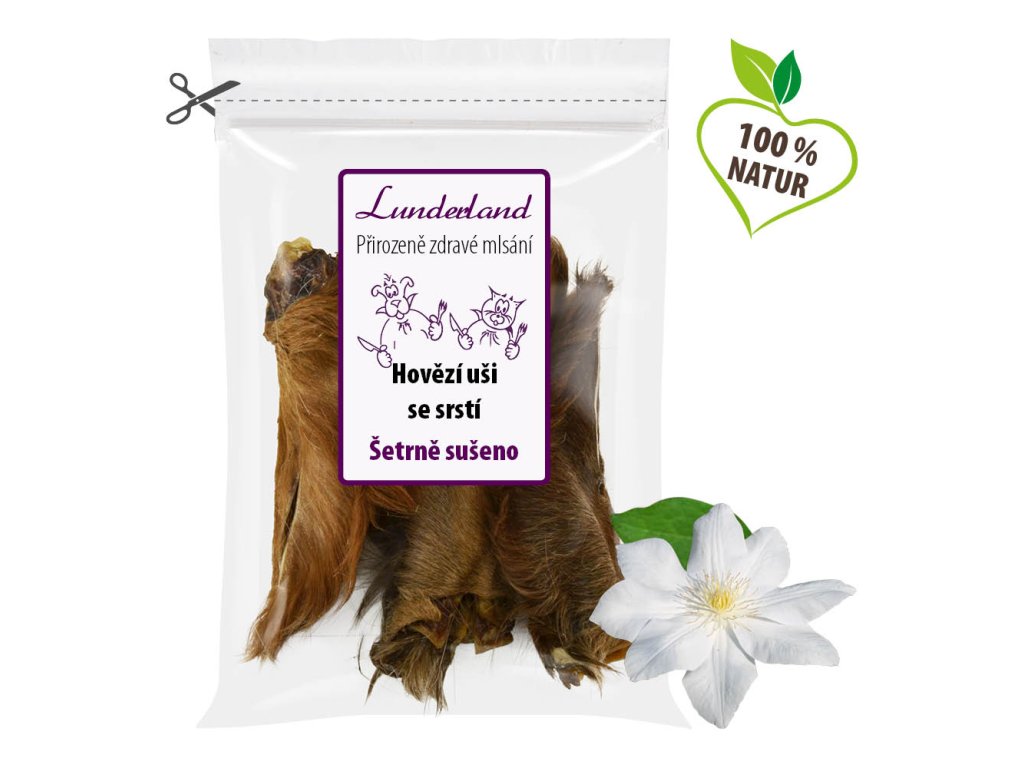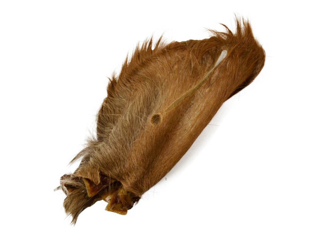 Vepřové uši. Analytické složky: hrubý protein 69,7 % / hrubý tuk 30,3 %.